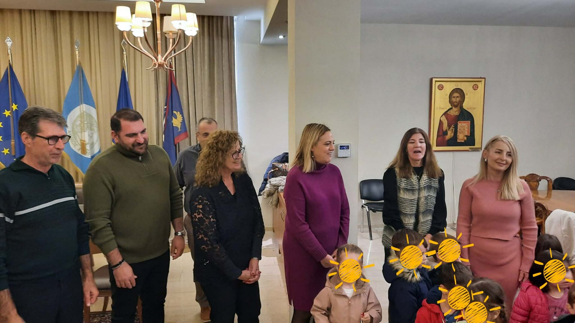 Η Δήμαρχος Σερρών Βαρβάρα Μητλιάγκα υποδέχθηκε με ιδιαίτερη χαρά τα παιδιά, ευχαριστώντας τα ίδια και τους εκπαιδευτικούς τους, για τη ζεστή χριστουγεννιάτικη «νότα» που χάρισαν στο Δημαρχιακό μέγαρο.