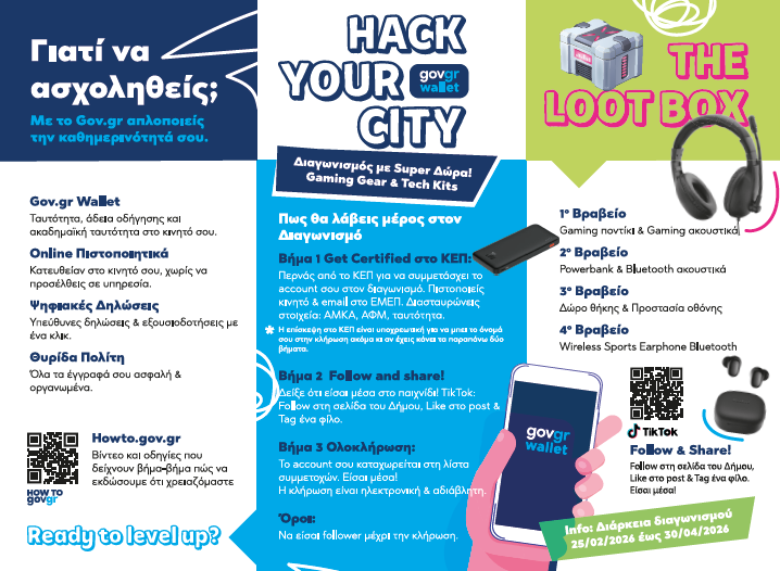 Παράλληλα, οι μαθήτριες και οι μαθητές ενημερώθηκαν για τον νέο διαγωνισμό του Δήμου Σερρών «Hack your city», ο οποίος ξεκινά την Τετάρτη 25 Φεβρουαρίου 2026, μέσω της πλατφόρμας TikTok και θα διαρκέσει έως την Πέμπτη 30 Απριλίου 2026, με δώρα για όλους τους τυχερούς συμμετέχοντες.