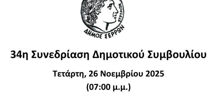 Οι συνεδριάσεις του Δημοτικού Συμβουλίου που θα πραγματοποιηθούν σήμερα, Τετάρτη 26 Νοεμβρίου 2025 στις 19:00 στην αίθουσα «Κωνσταντίνος Καραμανλής» του Διοικητηρίου, θα μεταδοθούν ζωντανά και μέσω του διαδικτύου στο κανάλι του Δήμου στο youtube.