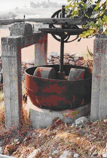 Στα ελαιοτριβεία αυτά, του παλαιού τύπου, ο καρπός της ελιάς περνά από τρία στάδια για να μας δώσει το ελαιόλαδο. Αρχικά, τα σακιά στα οποία περιέχεται, αδειάζονται μέσα σε ένα μεγάλο ξύλινο χωνί. Από εκεί πέφτουν σε μικρές ποσότητες οι ελιές πάνω σε ένα πέτρινο κυκλικό επίπεδο, όπου και πολτοποιούνται από δυο λιθάρια – κυλινδροειδείς πέτρες οι οποίες κινούνται με τη δύναμη ανθρώπινου χεριού ή από κάποιο μουλάρι το οποίο περιστρέφει τον άξονα. Ο πολτός που παράγεται, συγκεντρώνεται σε δοχεία και μοιράζεται στους <<ντορβάδες>> που είναι πλεγμένοι με σκοινί και έχουν κυκλικό σχήμα. Στη συνέχεια οι ντορβάδες αυτοί τοποθετούνται ο ένας πάνω στον άλλο και συγκρατούνται από έναν άξονα που περνά από την τρύπα που έχει ο καθένας στο κέντρο του.