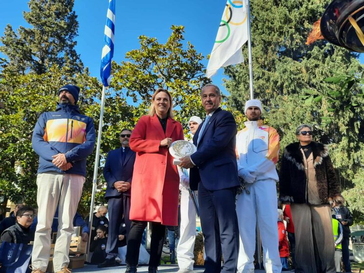 Στο χαιρετισμό του, ο εκπρόσωπος της Οργανωτικής Επιτροπής «Milano–Cortina 2026» Αλέσιο Μποτζιάτο, τόνισε: «Με μεγάλη συγκίνηση βρίσκομαι σήμερα εδώ για να διηγηθώ και να γιορτάσω το ταξίδι της Ολυμπιακής Φλόγας προς το Μιλάνο-Κορτίνα 2026. Κάθε λαμπαδηδρόμος, τόσο στην Ελλάδα όσο και στην Ιταλία, κουβαλά μαζί του μια προσωπική ιστορία που συνδέεται με εκείνη των τόπων που διασχίζει, μεταμορφώνοντας τη διαδρομή της Φλόγας σε μια μεγάλη συλλογική αφήγηση. Η Ολυμπιακή Φλόγα δεν είναι απλώς ένα αθλητικό σύμβολο είναι ένα παγκόσμιο μήνυμα ειρήνης, ενότητας και ελπίδας. Σήμερα, μαζί σας, γιορτάζουμε όχι μόνο ένα φυσικό ταξίδι, αλλά και ένα ταξίδι αξιών: το πάθος, την αντοχή, την προσφορά. Και είναι ακριβώς αυτές οι αξίες που θα μας συνοδεύουν μέχρι την αφή του Ολυμπιακού Βωμού του Μιλάνο Κορτίνα 2026».