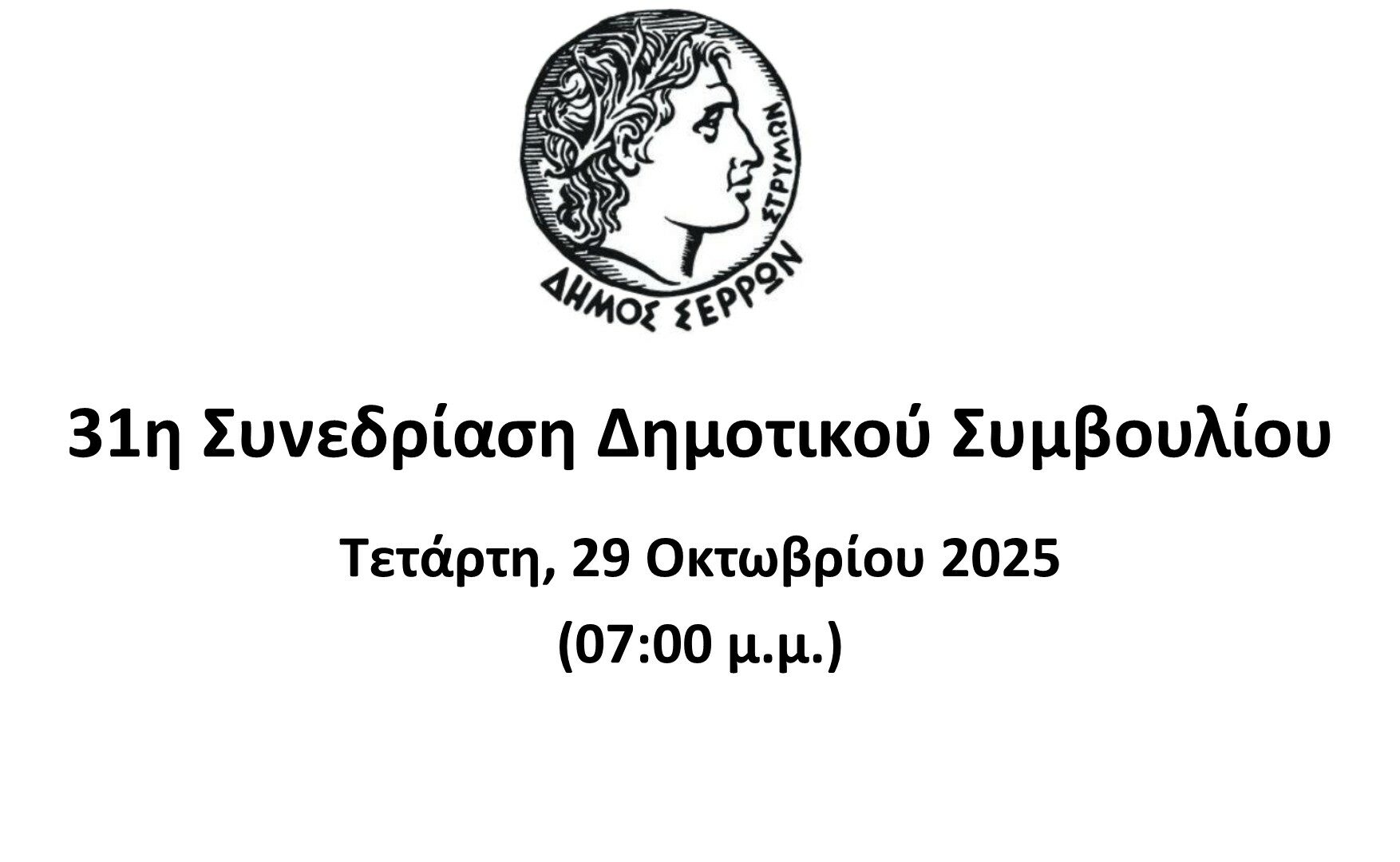 Η συνεδρίαση του Δημοτικού Συμβουλίου που θα πραγματοποιηθεί σήμερα, Τετάρτη 29 Οκτωβρίου 2025 στις 19:00 στην αίθουσα «Κωνσταντίνος Καραμανλής» του Διοικητηρίου, θα μεταδοθούν ζωντανά και μέσω του διαδικτύου στο κανάλι του Δήμου στο youtube.