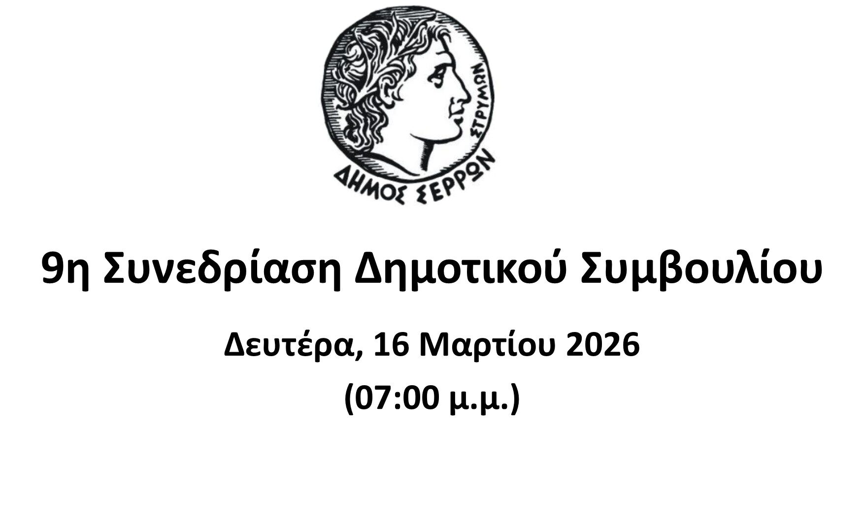 Η συνεδρίαση του Δημοτικού Συμβουλίου που θα πραγματοποιηθεί σήμερα, Τετάρτη 16 Μαρτίου 2026 στις 19:00 στην αίθουσα «Κωνσταντίνος Καραμανλής» του Διοικητηρίου, θα μεταδοθούν ζωντανά και μέσω του διαδικτύου στο κανάλι του Δήμου στο youtube.
